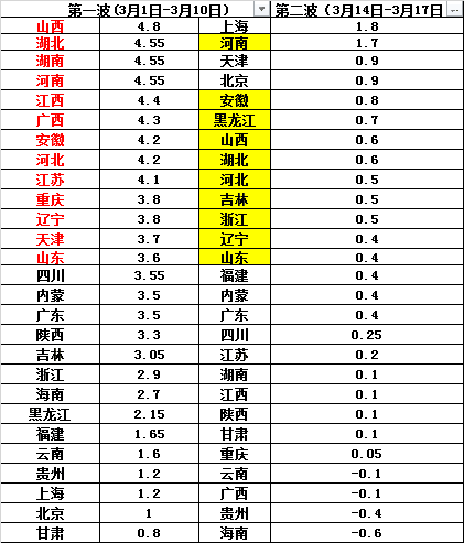 就省份来说,河南两次都处于前列,上涨幅度较大,不同的是,第二波中河南带头作用更为明显。