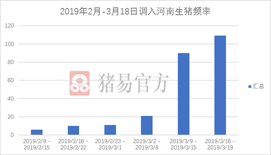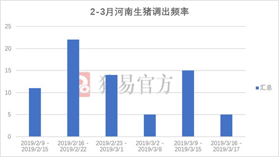 可以看出,在进入3月份之后,伴随河南猪价大幅上涨,调入河南生猪频率明显增加。
