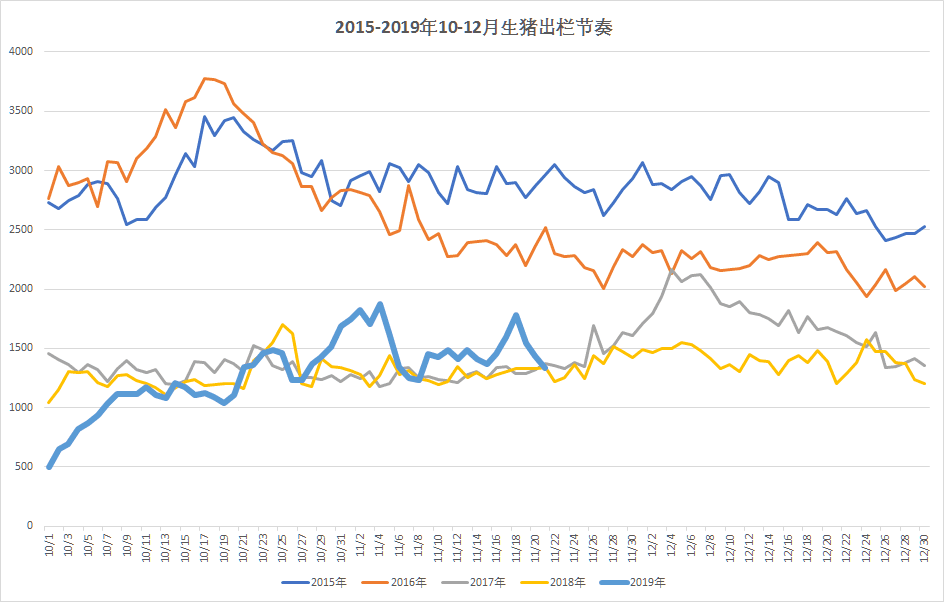 图 1 2015-2019 年 10-12 月生猪出栏节奏