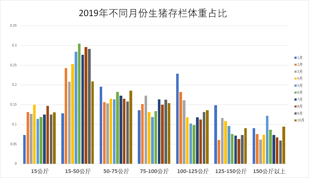 图 3 2019 年不同月份生猪存栏体重占比