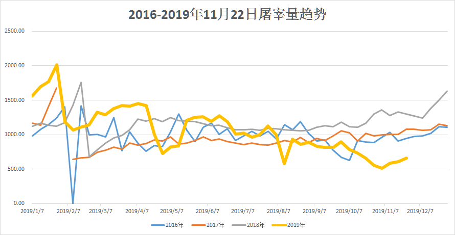 图 4 2016-2019 年 11 月 22 日屠宰量趋势