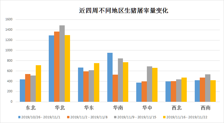 不同地区来说,大多数地区屠宰量都出现一定增长。