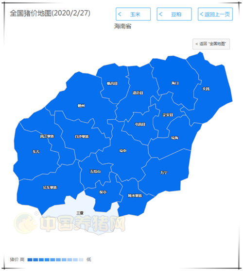2月27日,如我们所料,据中国养猪网猪价系统数据显示,今日我国生猪价格走势再次下跌。我们不得不认清,昨日猪价上涨仅仅是在下行周期内做的无谓的坚持,即便是涨幅明显,但仍无法改变猪价整体下行的走势。目前我国各行业受新冠肺炎疫情的影响在逐渐削弱,据官方消息,截止到2月24日24时,我国除湖北省以外新冠肺炎新增确诊案例将至个位数,目前暂无不利情况发生,除湖北外,我国其他省(市区)疫情都在猪价好转,经济也在逐步恢复当中,局面稳定,那么受疫情影响高涨的猪价也将准建下调稳定……