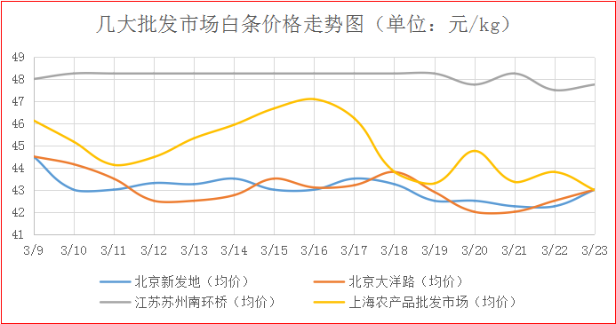 从北京、上海、江苏等地批发市场白条猪大宗成交价表现来看,今日白条肉价呈现跌涨调整,上海市场白条价格在昨日基础上有冲高回落现象,北京市场有止跌反弹现象,白条猪整体成交量依旧表现较为疲软。