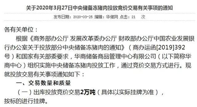 除此之外,据华储网最新消息,3月27日,官方将继续向市场投放储备冻肉,数量为2万吨。本次储备肉是今年第12次投放,累计投放数量达到25万吨。