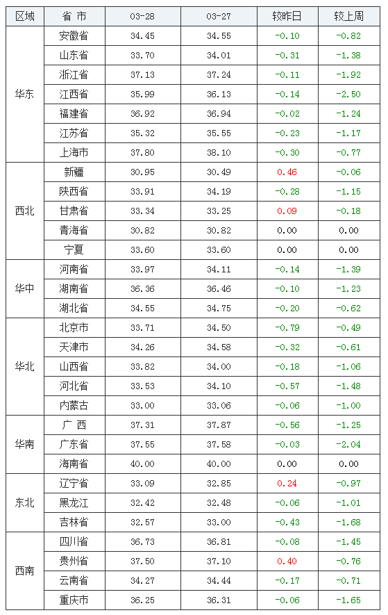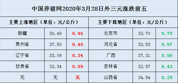 3月28日-全国外三元均价排行榜