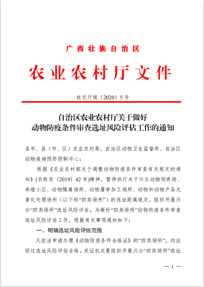 广西壮族自治区农业农村厅关于做好动物防疫条件审查选址风险评估工作的通知