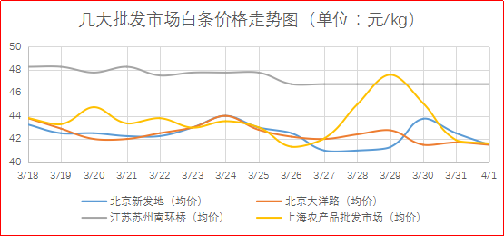 从北京、上海、江苏等地批发市场白条猪大宗成交价表现来看,今日白条肉价呈现出稳中伴跌态势,批发市场交易量表现疲软。