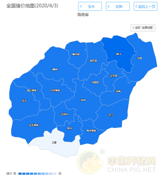 全国最高猪价为海南省,据中国养猪网数据统计,今日外三元均价为38.00元/公斤,价格较昨日持平,较上周有2.00元/公斤的跌幅。今日内三元均价为36.01元/公斤,价格较昨日持平;土杂猪均价为31.65元/公斤,价格较昨日持平