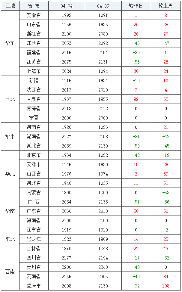 2020年4月4日,今日全国玉米均价为2017元/吨,较昨日上涨7元/吨。