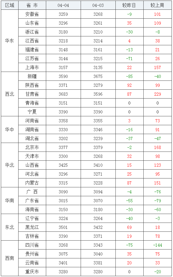 豆粕价格前五为:甘肃省3683元/吨、新疆维吾尔自治区3590元/吨、黑龙江省3501元/吨、山西省3425元/吨、云南省3401元/吨;