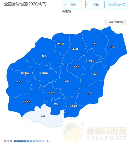 全国最高猪价为海南省,据中国养猪网数据统计,今日外三元均价为37.09元/公斤,价格较昨日下跌0.53元/公斤,较上周有0.91元/公斤的跌幅。今日内三元均价为35.59元/公斤,价格较昨日持平;土杂猪均价为32.24元/公斤,价格较昨日持平