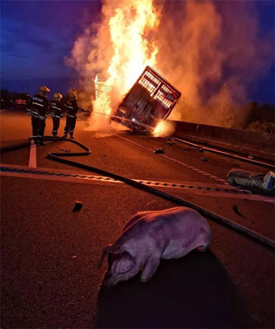 此时正值天干物燥的春夏之际,也是极易引起火灾的季节,前几天四川森林火灾一直牵动着全国人民的心,每每想起都让人殷殷追思和深切怀念。在(昨日)4月6日凌晨4点多,浙江慈溪地段一辆由山东开往宁波的半挂拉猪货车突然在高速上起火,车上91头生猪全部被烧死、熏死,仅余一头猪较为“幸运”地逃出命运的“黑手”。车厢里那些被烧死或被熏死的猪,以各种挣扎过的姿态出现在救援人员面前。按照李师傅所说,“这么多头猪没了,损失至少五六十万。”