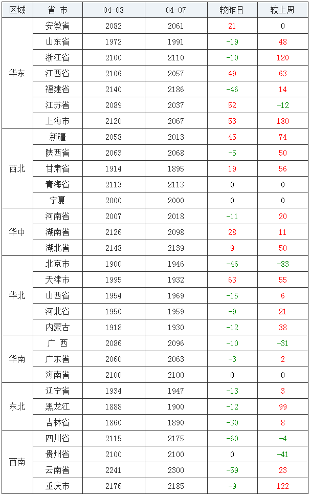 2020年04月08日,今日全国玉米均价为2026元/吨,较昨日下跌8元/吨。