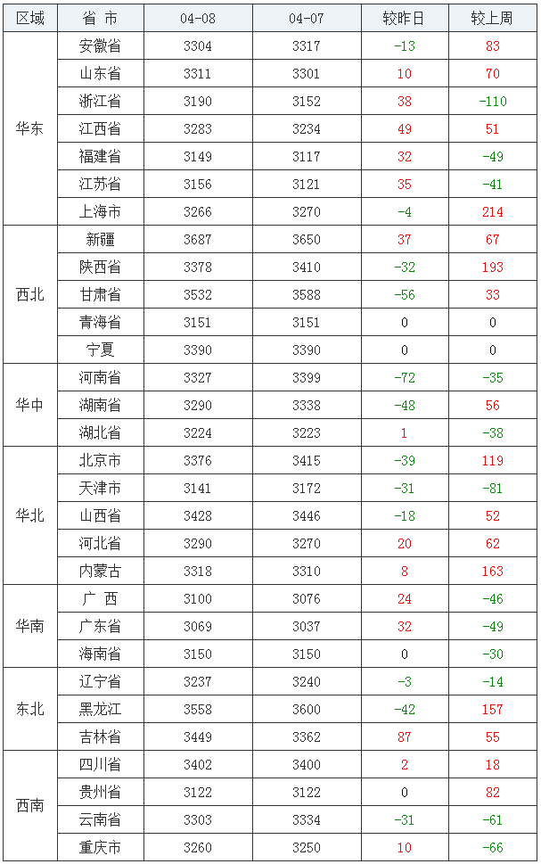 04月08日-全国豆粕(43%蛋白)均价
