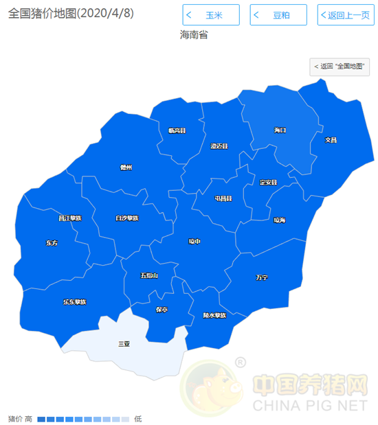 今日部分地区猪价:(1)陕西省32.87-34.50元/公斤、(2)甘肃省13.78-34.00元/公斤、(3)青海省10.50-36.00元/公斤、(4)宁夏回族自治区31.00-36.00元/公斤、(5)新疆维吾尔自治区13.13-32.00元/公斤、(6)河北省31.85-36.10元/公斤、(7)山西省31.57-35.00元/公斤、(8)内蒙古自治区10.00-37.33元/公斤、(9)辽宁省31.20-33.40元/公斤、(10)吉林省31.60-33.00元/公斤。