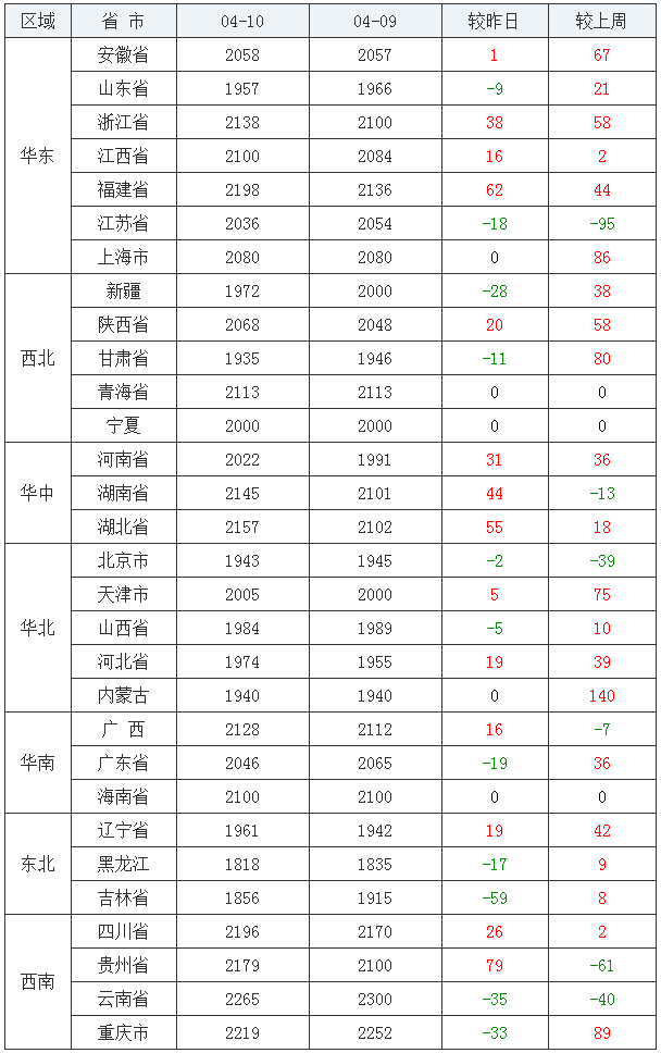 2020年04月10日,今日全国玉米均价为2024元/吨,较昨日下跌8元/吨。