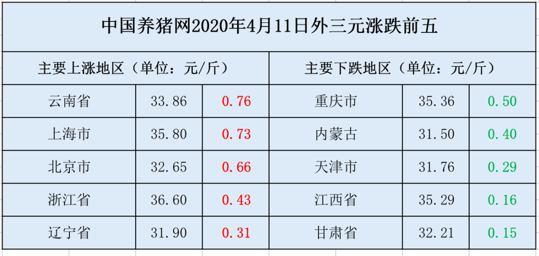今日我国猪价上涨最大的省份是云南省,价格较昨日上涨0.76元/公斤,下跌最大的省份是重庆市,价格较昨日下跌0.50元/公斤。就今日生猪价格涨跌前五来看,国内涨幅大于跌幅,涨幅大多集中在南方地区。