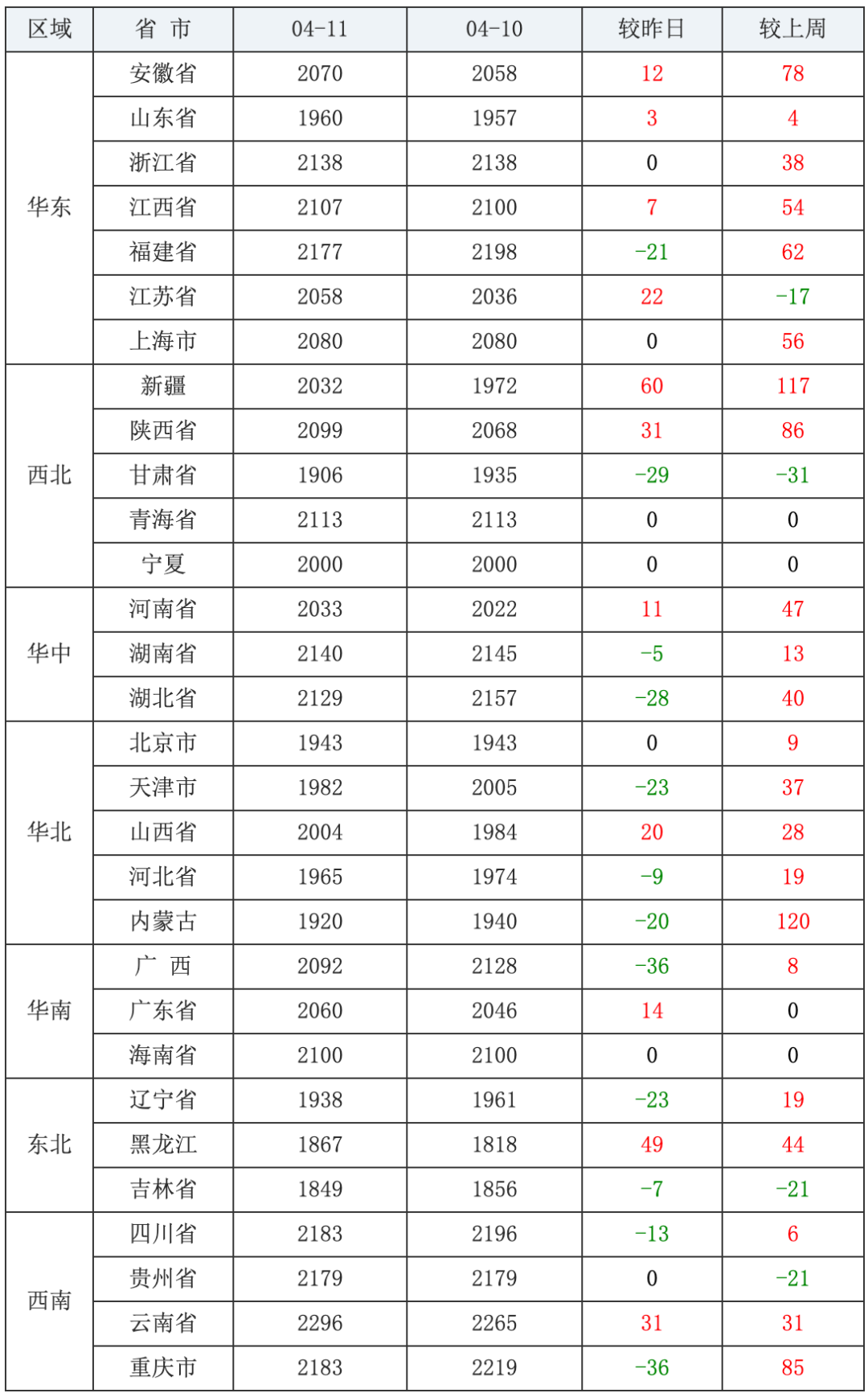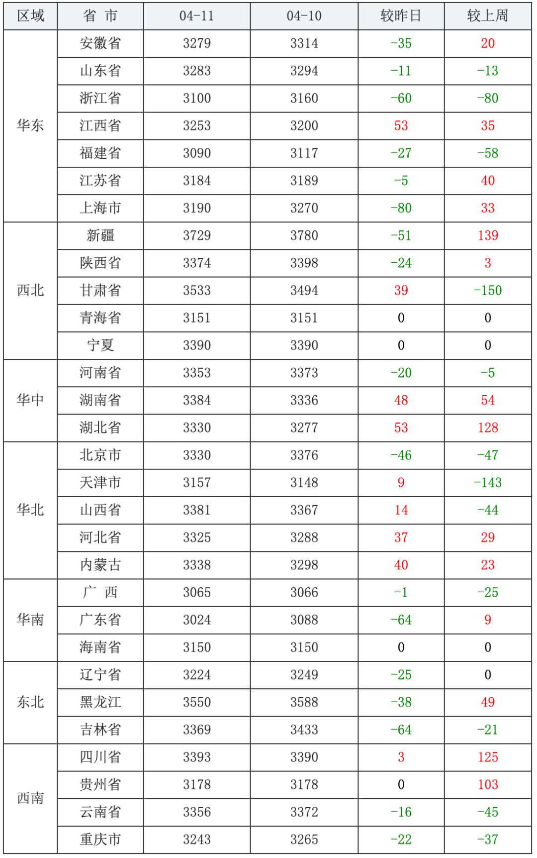 豆粕价格前五:新疆维吾尔自治区3729元/吨、黑龙江省3550元/吨、甘肃省3533元/吨、四川省3393元/吨、宁夏回族自治区3390元/吨;