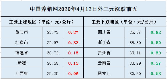猪价排名前三的地区有:海南省、福建省、广东省。
