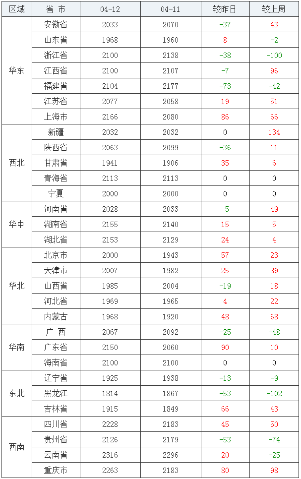 2020年04月12日,今日全国玉米均价为2033元/吨,较昨日上涨3元/吨。