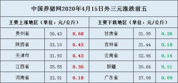 04月15日全国外三元涨跌前五