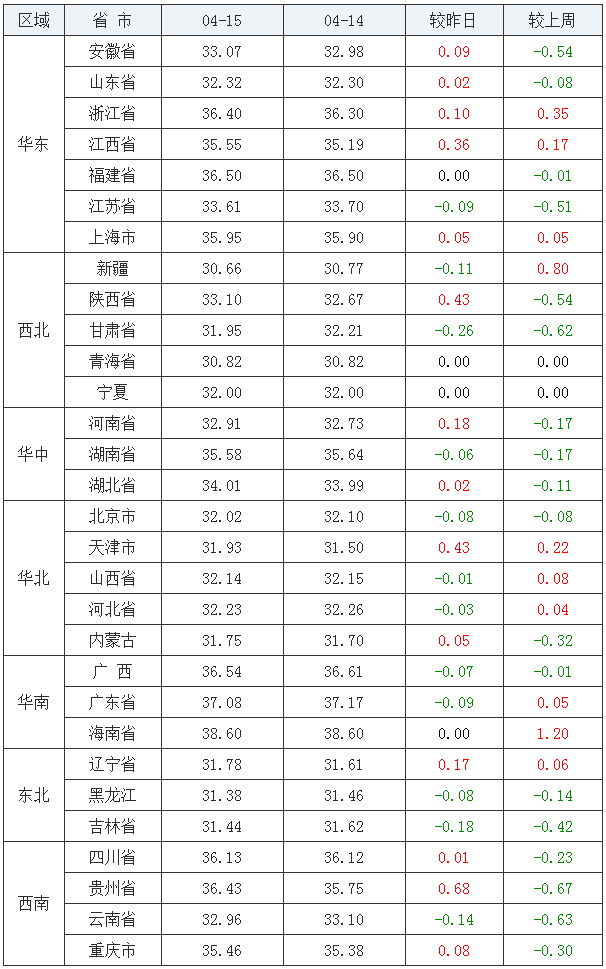 04月15日全国外三元均价排行榜