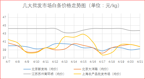 从北京、上海、江苏等地批发市场白条猪大宗成交价表现来看,今日白条肉价呈现下跌态势,市场交易情况表现疲软。