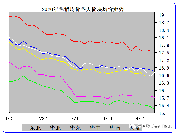2019年11月份的大跌,全国均价一度下跌到15.5元附近。如今,到了16.3附近。因此,后市能不能一蹶不振,取决于现在生猪存栏和消费的缓和。生猪存栏看,今年1季度的猪饲料销量要比去年同期高出50%,当然这里面主要是这批牛猪吃掉了。所以,真正的生猪存栏有上升,但是不会太高。而国内的消费,由于出口这块会越来越差,虽然环比2月份,3月份的消费有巨大提升,但是4月份,无法保持这样的速度,甚至由于大中院校复课困难,不排除消费萎靡不前。两下一中和,我们大概也就有了结论: