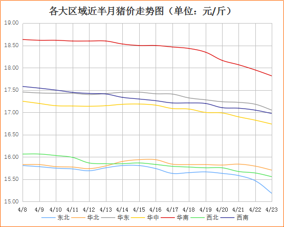 目前国内各大区域猪价差异化表现明显,东北、西南、华东、华中、华南、西北、华北地区猪价均出现了一定幅度的下跌现象,整体猪价呈现下跌走势,跌幅有扩大现象。