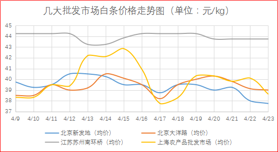 从北京、上海、江苏等地批发市场白条猪大宗成交价表现来看,今日白条肉价呈现下跌态势,市场交易情况表现疲软。