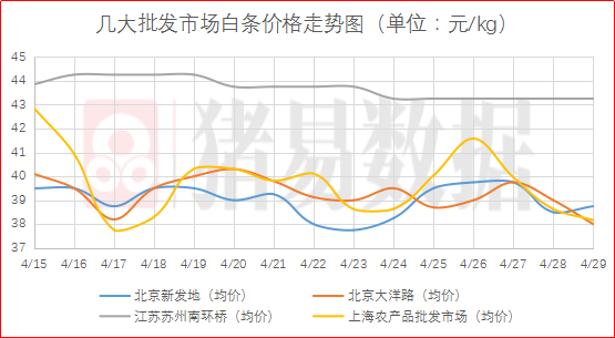 从北京、上海、江苏等地批发市场白条猪大宗成交价表现来看,今日白条肉价呈现下跌态势,市场交易情况继续表现疲软。