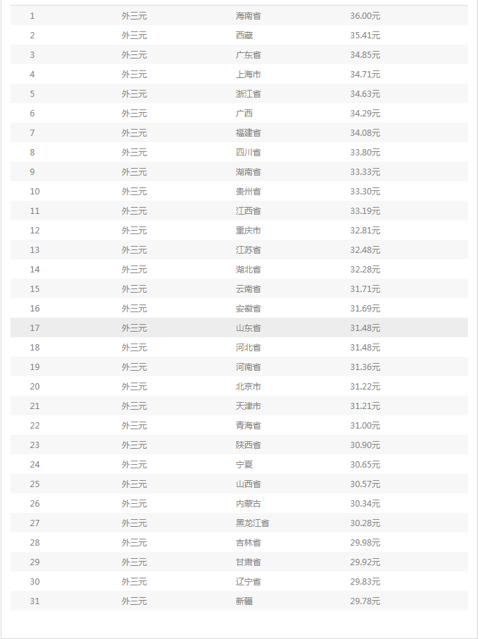 全国外三元均价涨跌表