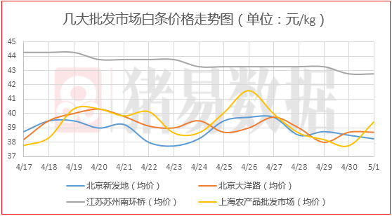 整体来看,全国生猪价格呈现跌涨调整,东北地区局部屠宰场有反弹现象,其他地区跌价现象明显放缓,养殖企业跌价现象明显明显减少。从今日北京、上海等消费城市白条猪大宗价格表现来看,今日白条猪价呈现稳定为主,少量市场有跌涨调整态势,节日效应表现一般。今日处于五一小长假第一天,北方一些地方高速公路上出现了堵车现象,加上不少养殖企业有休假现象,导致一些屠宰企业采购出现较为明显的难度,东北地区屠宰企业出现了一定的稳中伴涨态势,预计今晚当地屠宰企业仍有一定的涨价现象。