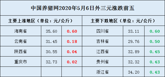今日我国猪价上涨最多的地区:海南省,较昨日上涨0.60元/公斤。