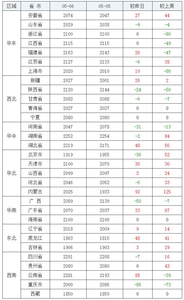 玉米均价(饲料原料)后五:西藏自治区1850元/吨、黑龙江省1863元/吨、吉林省1906元/吨、北京市1919元/吨、重庆市2000元/吨。