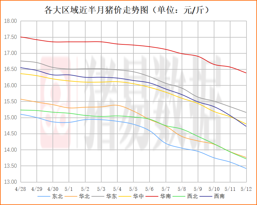 各大区域猪价表现: