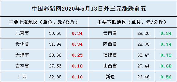 今日我国猪价上涨最多的地区:北京市,较昨日上涨0.34元/公斤。