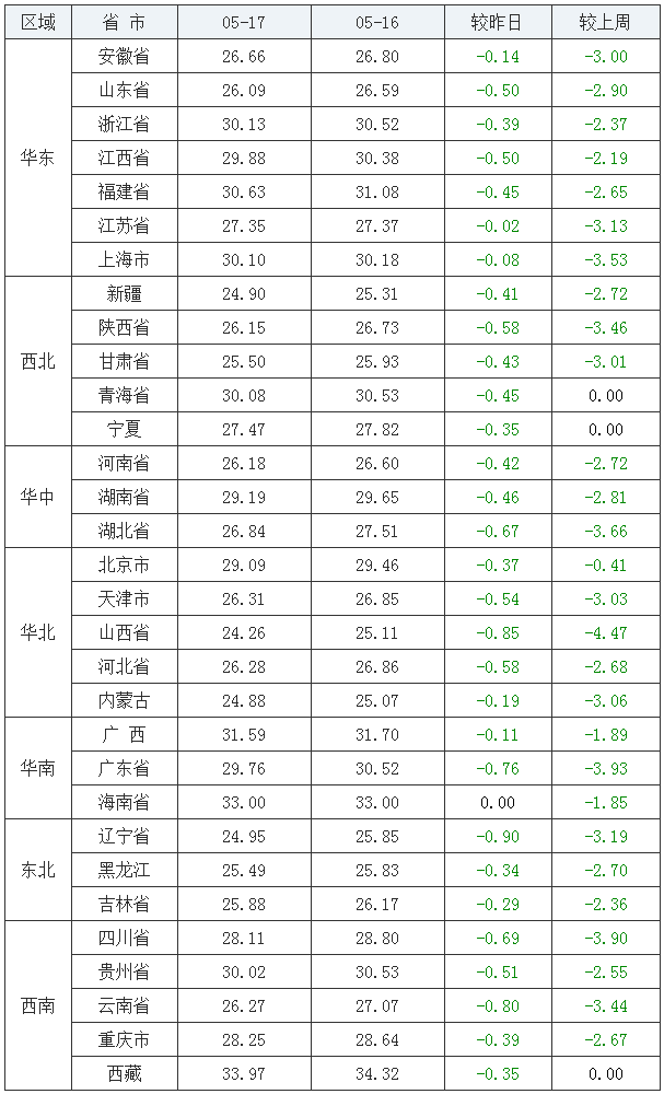 活猪价格排名后三的地区:山西省、内蒙古自治区、新疆维吾尔自治区。
