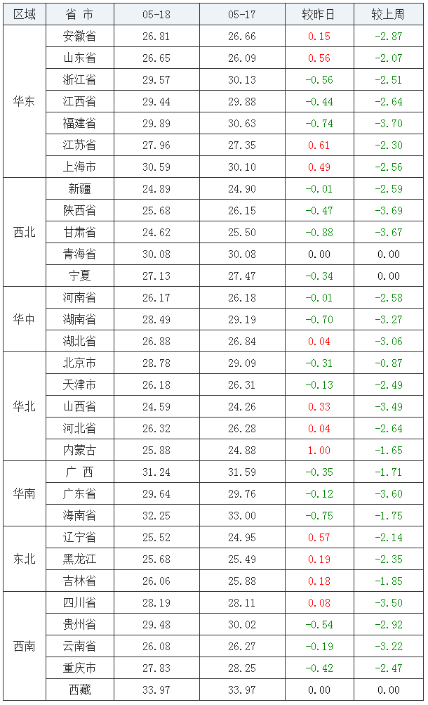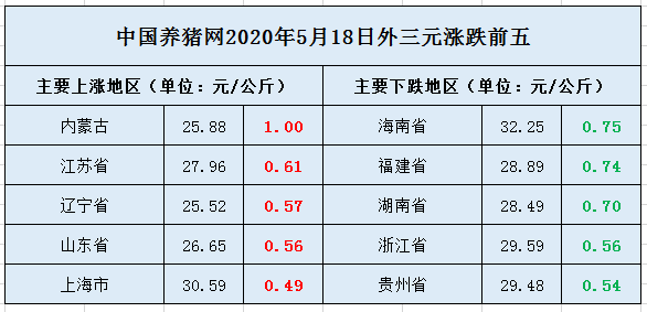 05月18日全国外三元均价排行榜