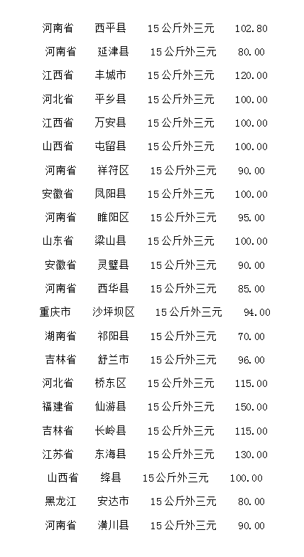 15公斤外三元仔猪(单位:元/公斤)
