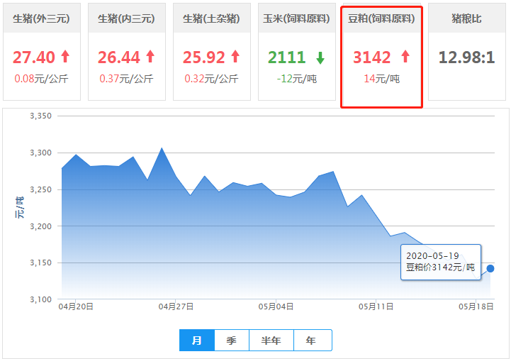豆粕均价(饲料原料)前五:新疆维吾尔自治区3585元/吨、宁夏回族自治区3570元/吨、吉林省3354元/吨、云南省3305元/吨、上海市3304元/吨;