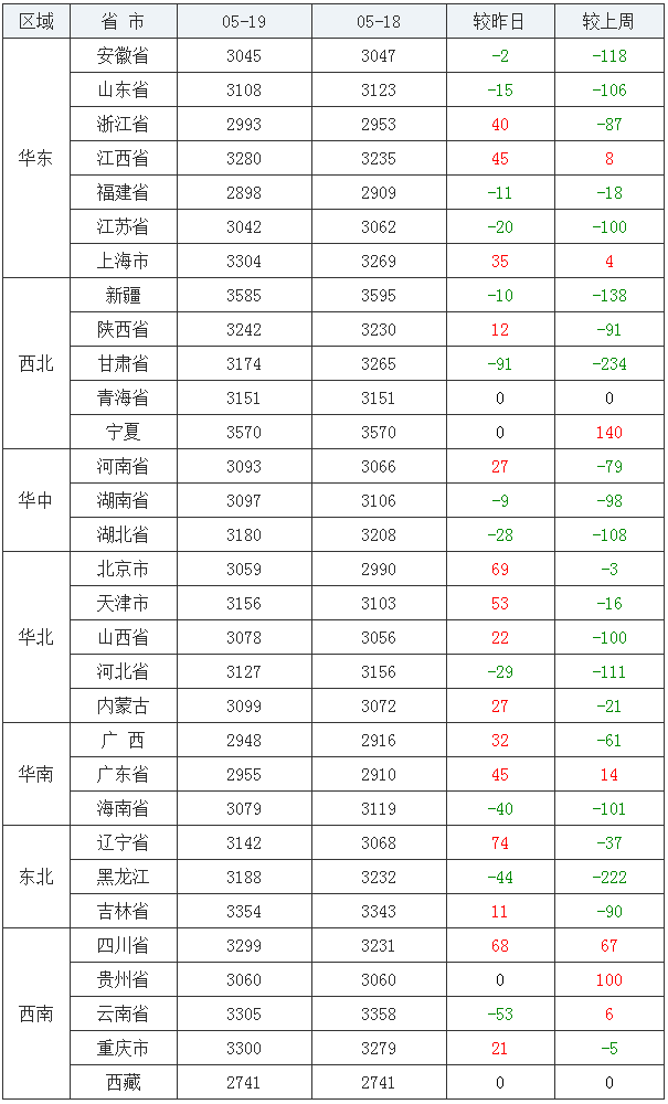 豆粕均价(饲料原料)后五:西藏自治区2741元/吨、福建省2898元/吨、广西壮族自治区2948元/吨、广东省2955元/吨、浙江省2993元/吨。