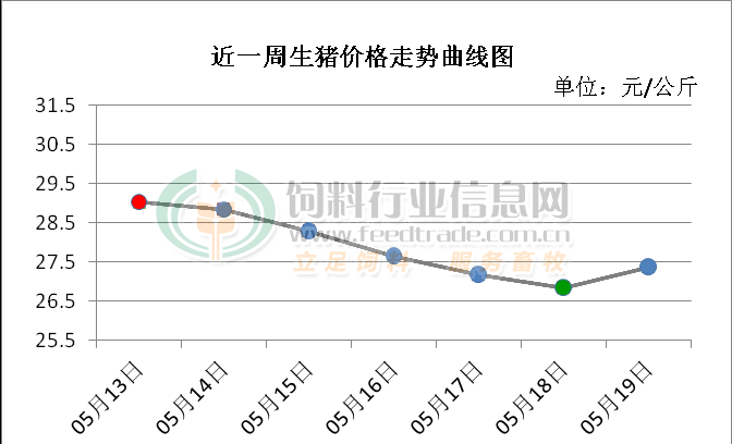 2. 主流市场内三元大猪全国销售均价26.91元每公斤,相比昨天上涨0.19%;