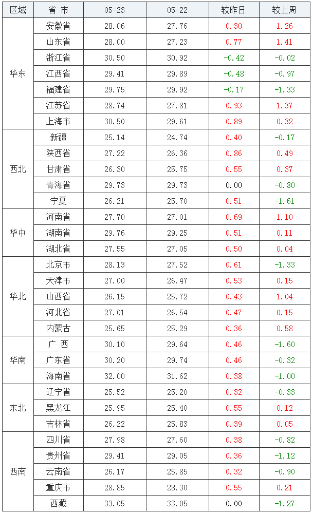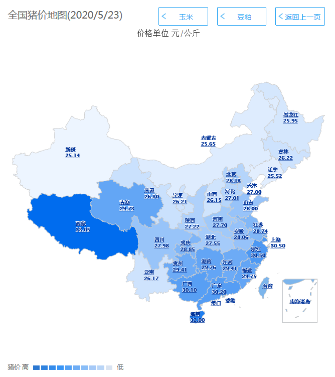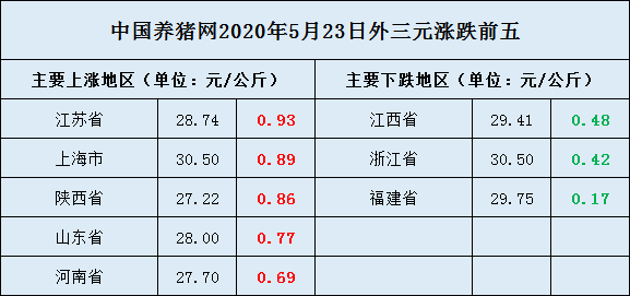 2020年05月23日(星期六),猪价系统数据监测如下:
