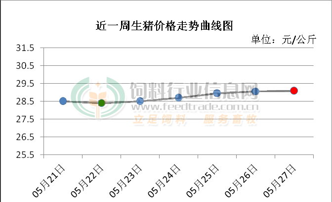 2. 主流市场内三元大猪全国销售均价28.78元每公斤,相比昨天上涨0.20%;