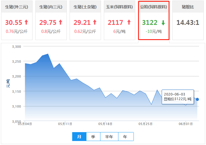 豆粕均价(饲料原料)前十:新疆维吾尔自治区3622元/吨、重庆市3328元/吨、江西省3308元/吨、吉林省3301元/吨、上海市3300元/吨、四川省3255元/吨、海南省3247元/吨、江苏省3220元/吨、甘肃省3213元/吨、贵州省3200元/吨;