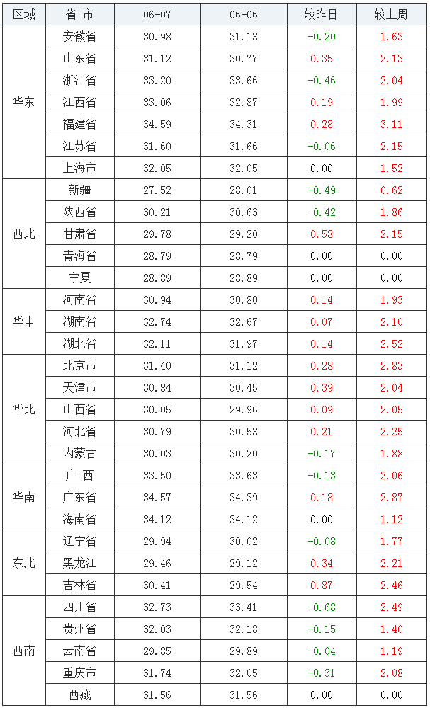 全国外三元走势(2020/06/07)