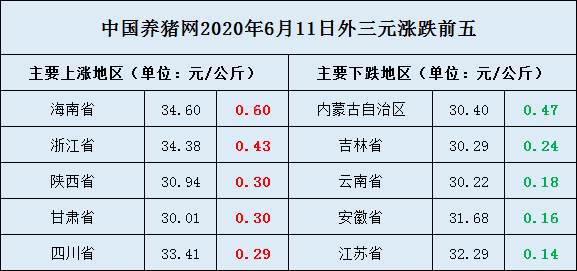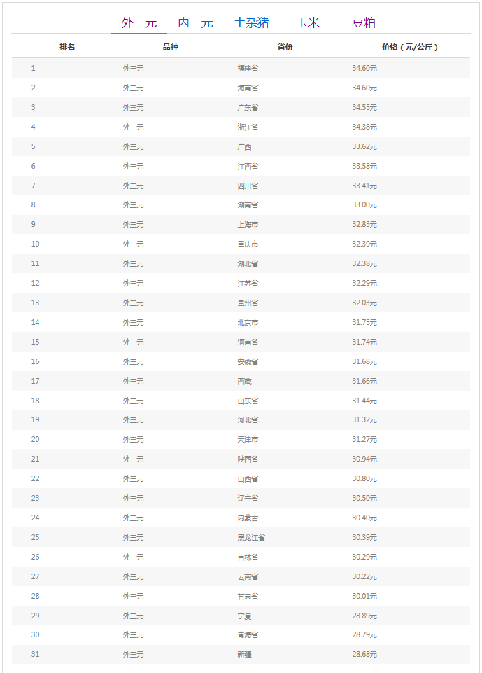 从“全国猪价排行榜”来看,今日我国猪价榜首为此“换人”,福建重新夺下第1的“宝座”。而昨日的榜首--广东省今日在全国排名第3,位于海南省之下。海南猪价今日上涨了0.60元/公斤,目前价格水平与榜首福建猪价持平,两省并列第一!