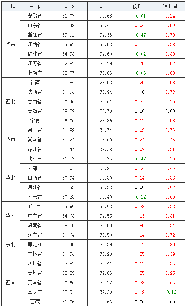 2020年06月12日(星期五),猪价系统数据监测如下: